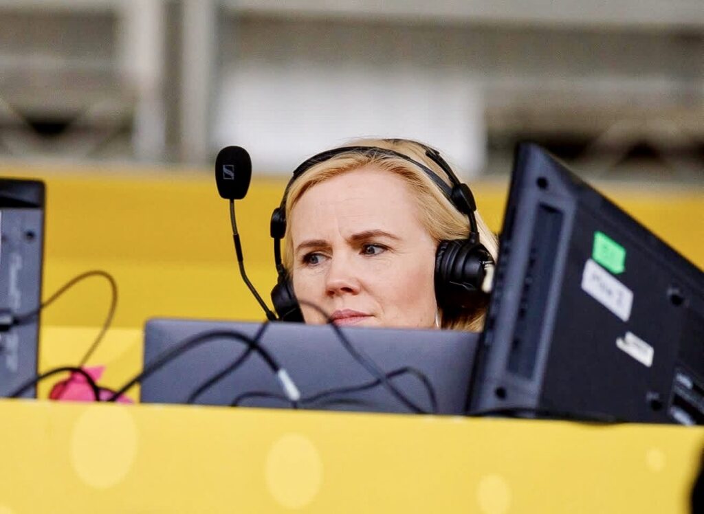 What’s the difference between commentating for TV and radio audiences? And crucially, how does she keep warm when perched high up in wet and windy stadiums?