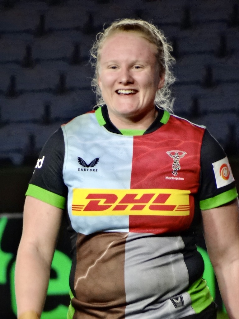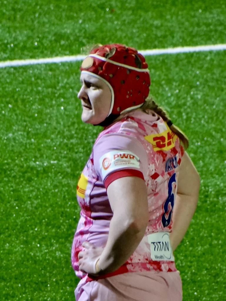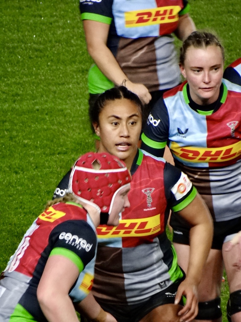 Finally, she made her much-anticipated Quins debut as a sub in their gritty home win over Sale Sharks on December 13 2025 (yes, I was there for this; photos below). And despite her delayed entry into the PWR she has seven tries so far this season and an over 90 percent tackle success rate for Quins.