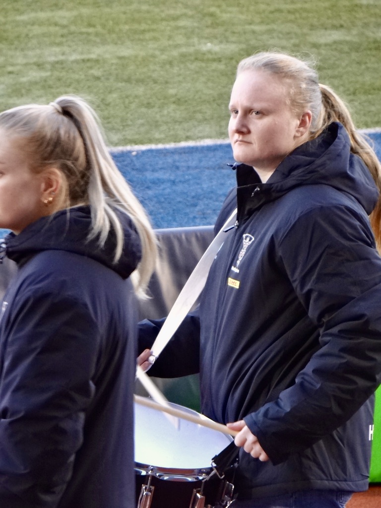 First time I witnessed Irish rugby superstar Aoife Wafer in the flesh, she wasn’t on the pitch, but sitting right behind me, grinning while banging a huge drum (below, left) as Harlequins took on Saracens at the StoneX.