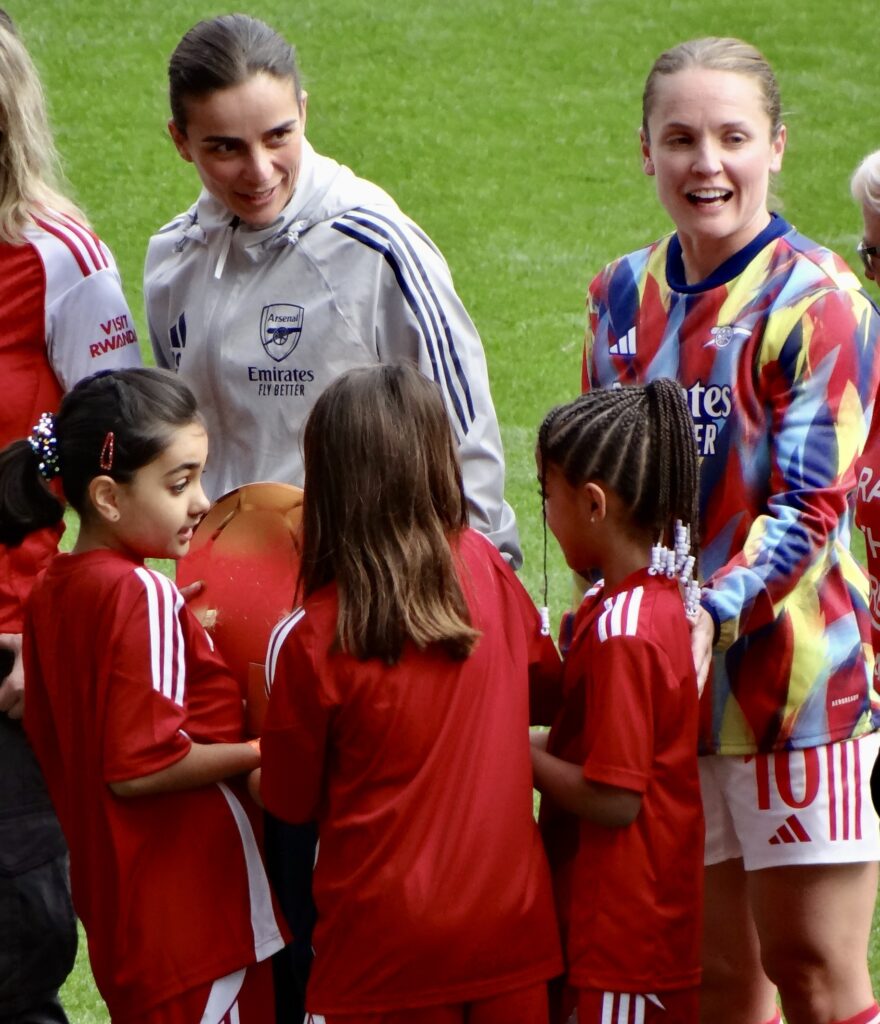 So, yeah, there’s a lot of growth I think and I’m so happy that for the young girls growing up now (like those with Slegers and her Arsenal captain Kim Little, above), there are more role models, because I didn’t have any when I was young.