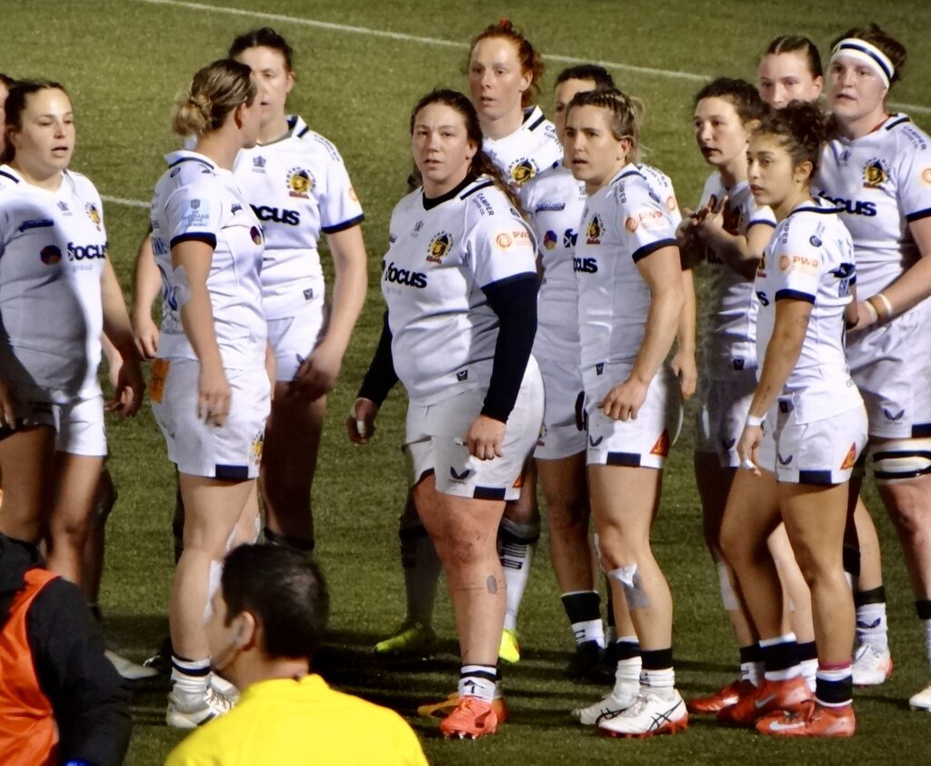 Exeter Chiefs: 15 Sabrina Poulin, 14 Katie Buchanan, 13 Alex Tessier, 12 Nancy McGillivray, 11 Claudia Moloney-MacDonald, 10 Liv McGoverne, 9 Flo Robinson (vc); 1 Hope Rogers, 2 Eleanor Febrey, 3 DaLeaka Menin, 4 Linde van der Velden, 5 Dorothy Wall, 6 Emily Robinson (c), 7 Maisy Allen (vc), 8 Maddie Feaunati