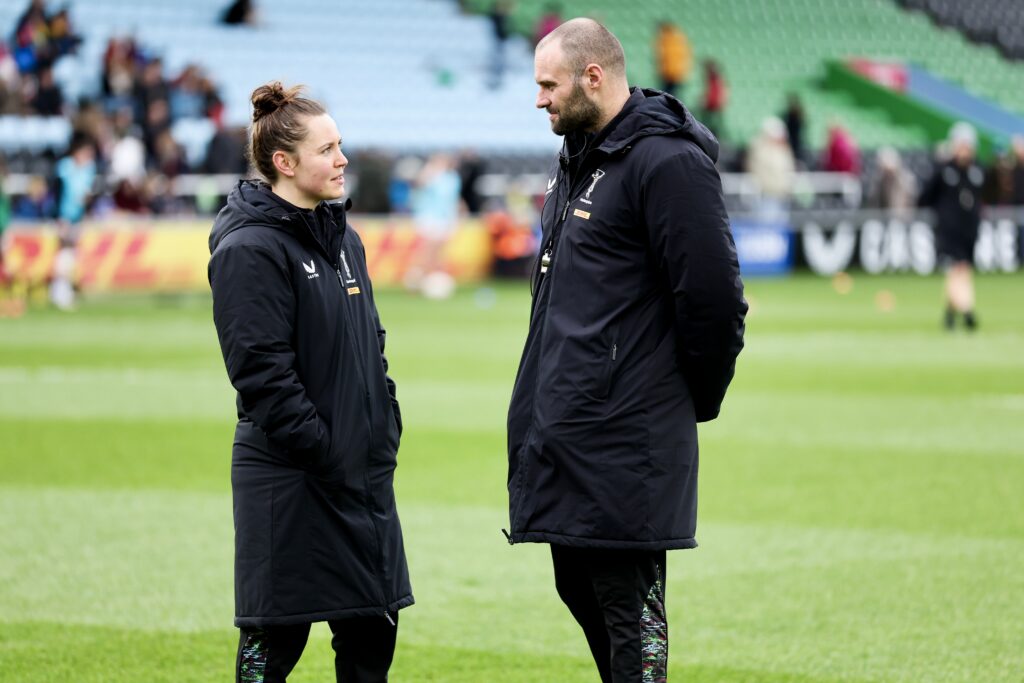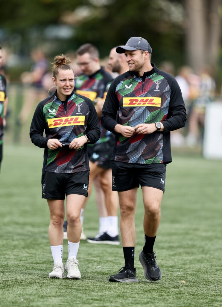“I was really excited when she got the opportunity to step up,” says Harlequins head coach Ross Chisholm of his new Head of Women’s Rugby, Pat Metcalfe-Jones (below, both together).