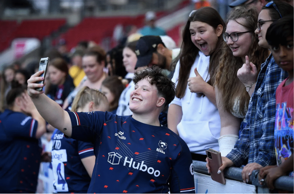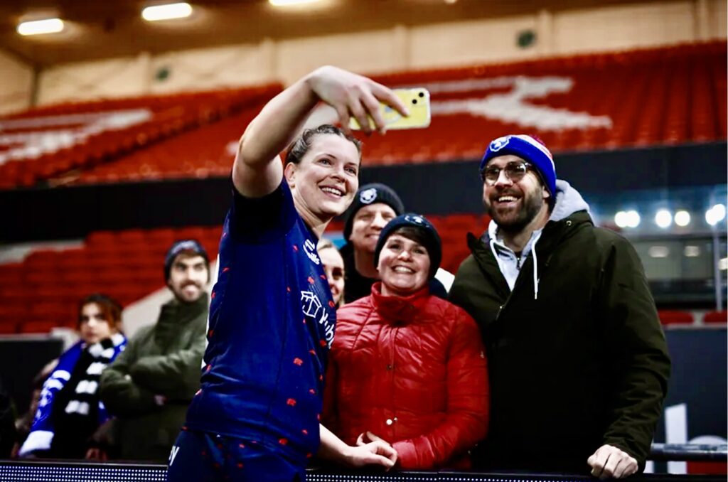 Athletes across every team go above and beyond for spectators after matches (as with Red Roses’ stars, Abbie Ward and Hannah Botterman, above), wanting to connect with fans, be familiar faces and a visible role model to everyone that comes out.