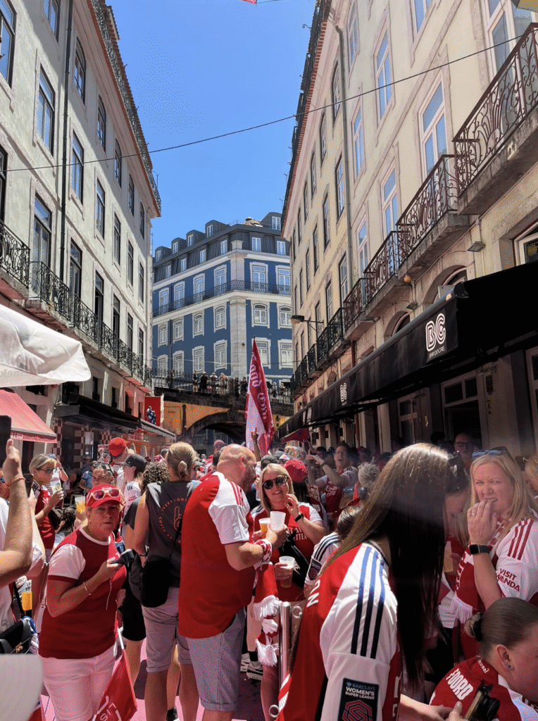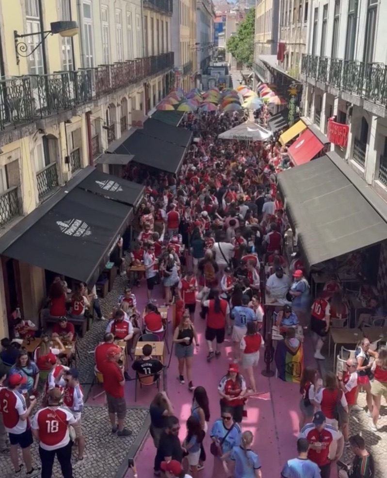 The energy across the whole city of Lisbon was electric, and fans from both sides could be seen and heard, loud and proud! Barcelona fans could be seen in every corner of Lisbon while Arsenal filled Pink Street.