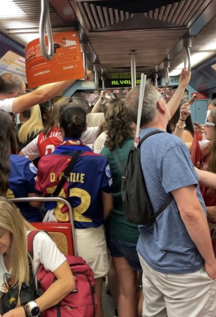 On the journey to the station there were around 10 Arsenal fans on the tube with the rest Barça, filling it until no more could fit on.