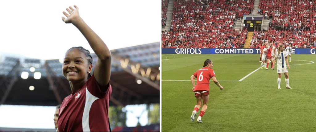 Looking back now at the summer of 2025, Wandeler admits how overwhelming the home support was: “From the start of the Euros we felt the love the people in Switzerland had for the team and for women’s football. I mean at one training we had four thousand people watching… that was amazing.”