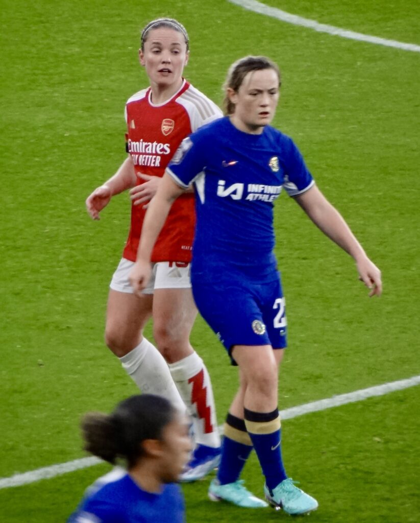 First though, we spoke to Chelsea’s midfield dynamo, Erin Cuthbert (above) about the latest bout: