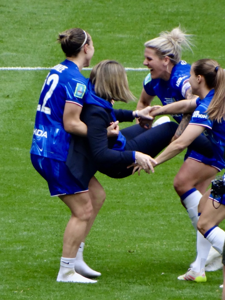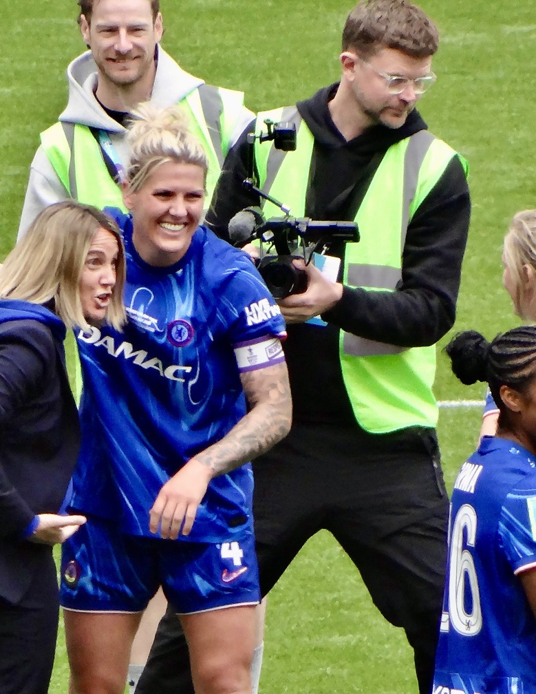 Her stories of Champions League games abroad and the away game at Borehamwood on a waterlogged Meadow Park are funny (and it feels like we are just starting to see her sense of humour at Chelsea, including much laughter in photos below). The OL manager at the time said the pitch was “like a potato field.”