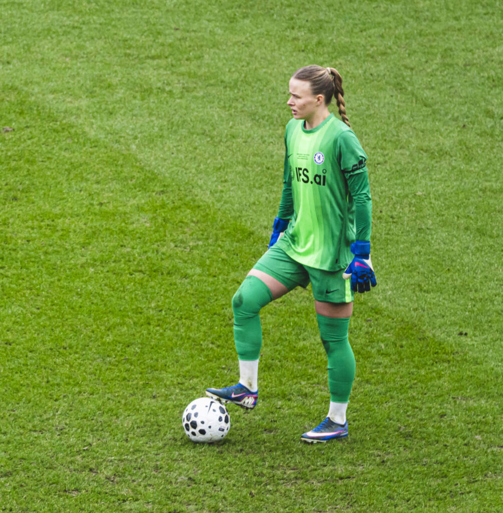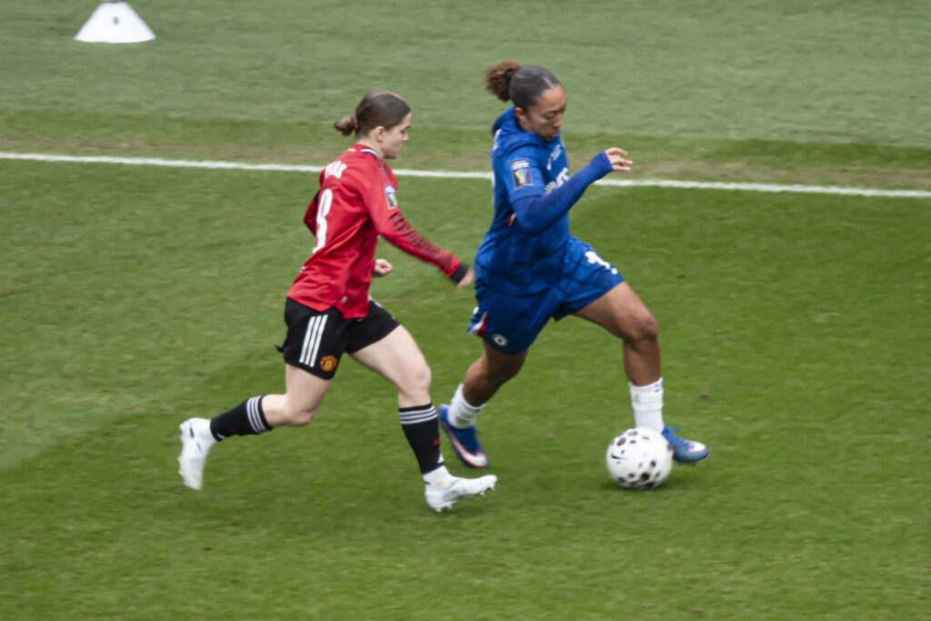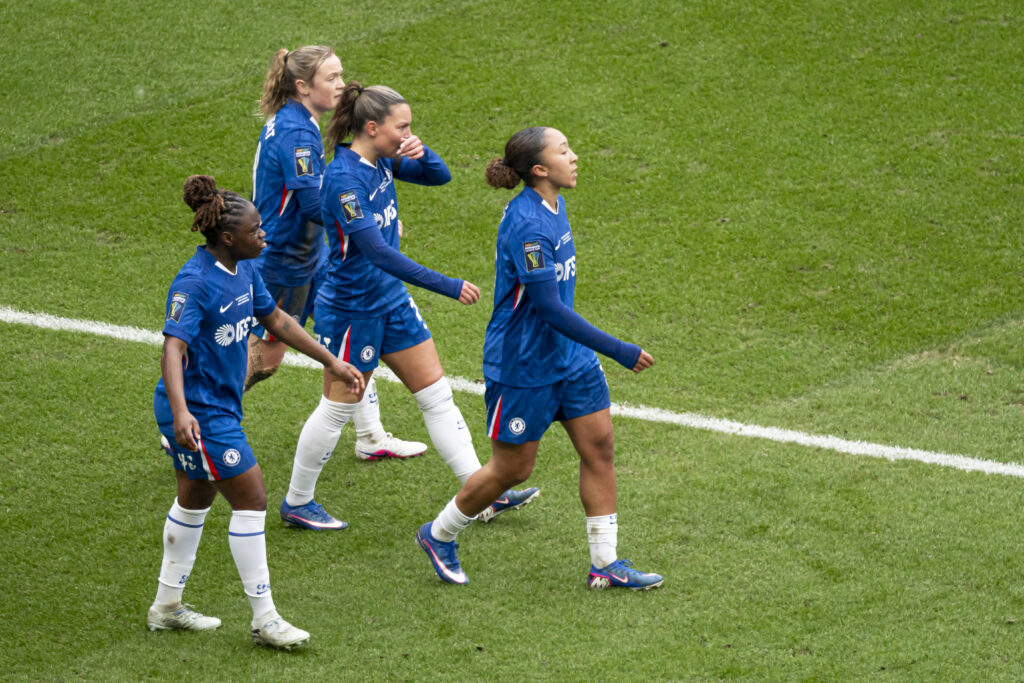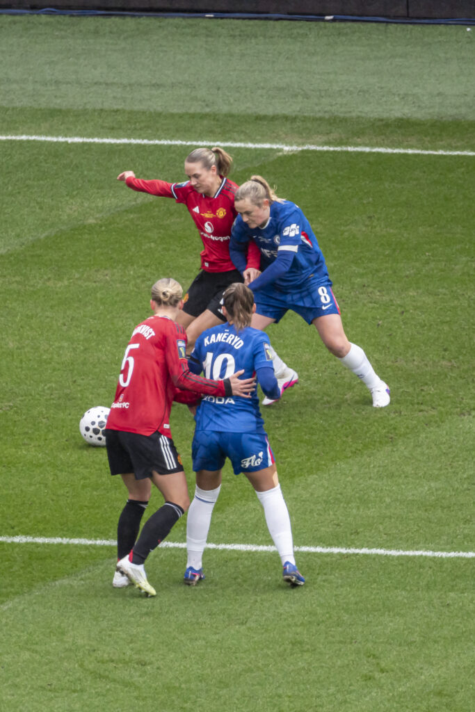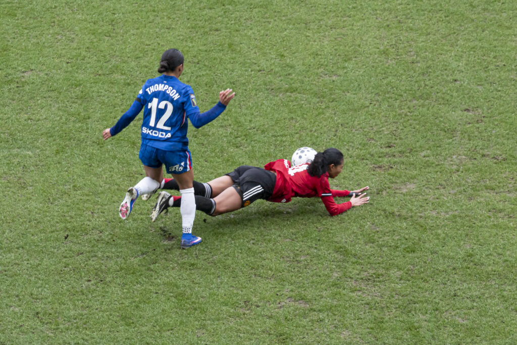 Chelsea began by dominating possession, but the game didn’t feel one-sided. Arguably, without Lauren James providing a constant threat, there was little difference between the teams.