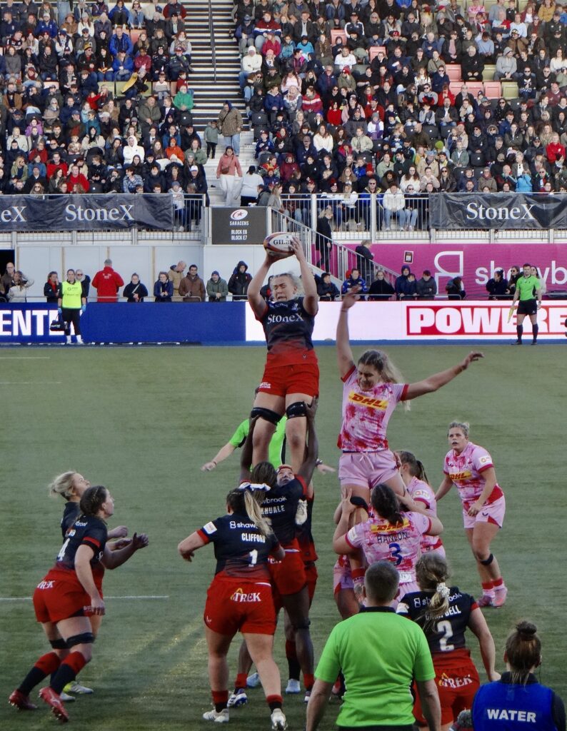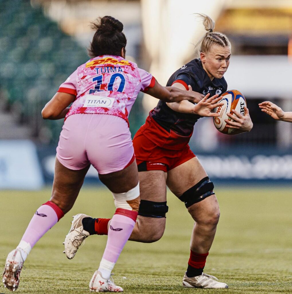 What’s the best thing for you about playing rugby for Saracens (below, in the thick of it, v Harlequins) and the Red Roses?